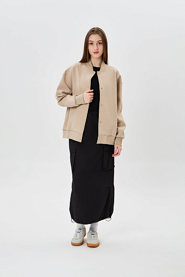 Спортивный. Такие женские вещи удобные и функциональные, предназначены для активного образа жизни. Могут включать в себя специфические элементы, такие как капюшоны или эластичные материалы.